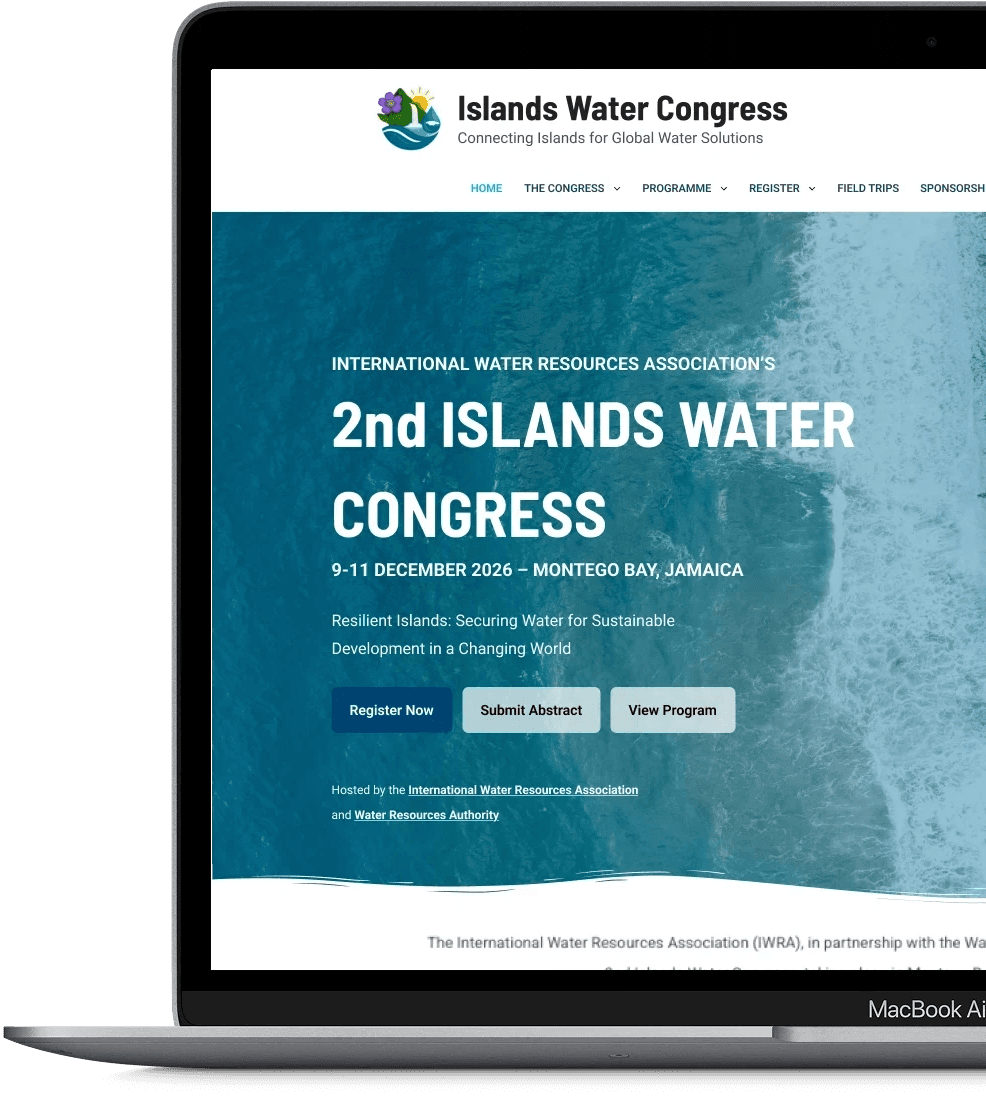 The International Water Resources Association (IWRA), in collaboration with the Water Resources Authority (WRA), required a website to support the Islands Water Congress and communicate a large volume of information to a global audience. While the existing website contained all necessary content, there was an opportunity to improve how that information was structured and presented to better support users navigating the site.
